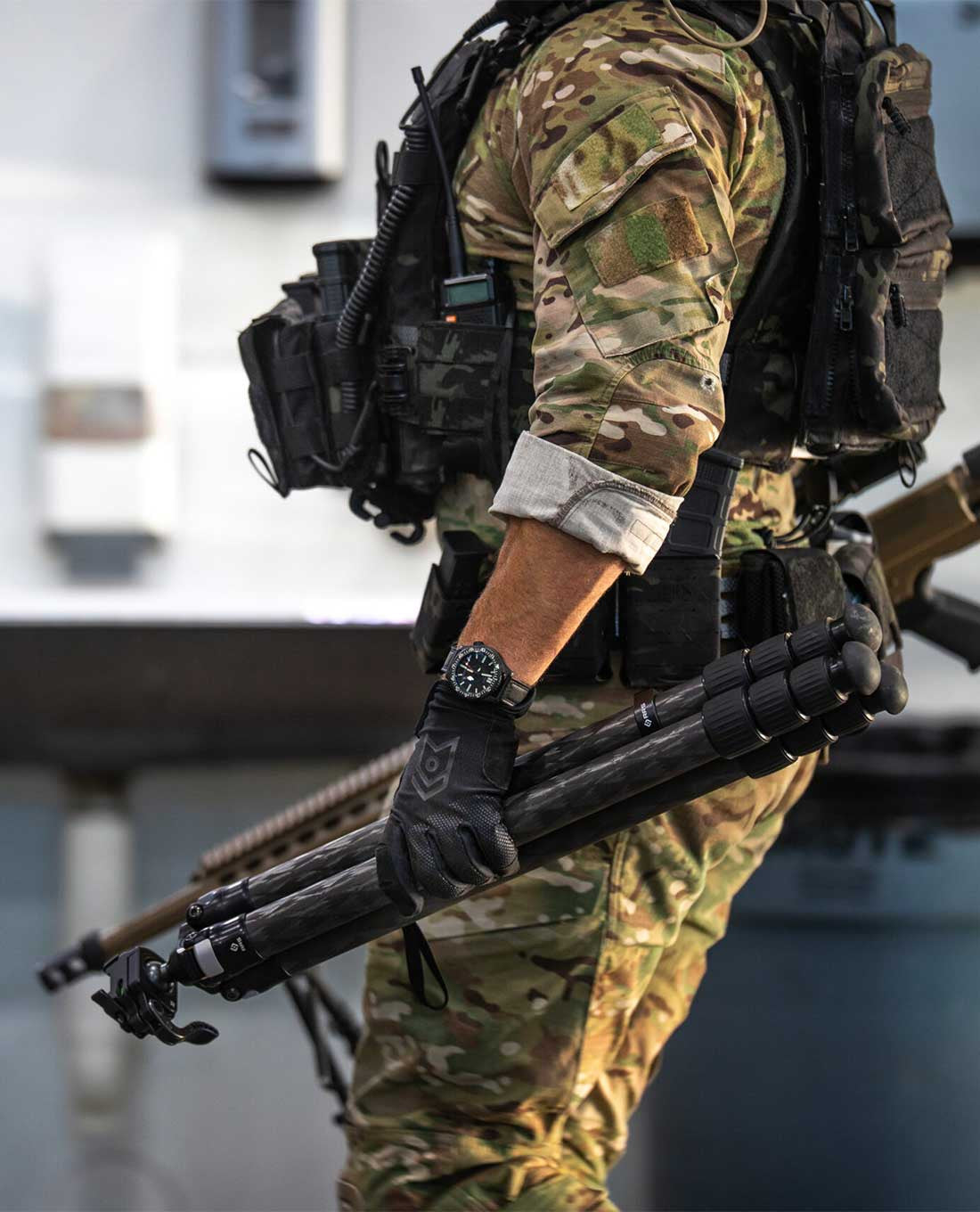 Die C-Grip-Konstruktion schützt den Zeigefinger vor Verbrennungen durch heiße Gewehrläufe und erhöht die Haltbarkeit an stark beanspruchten Stellen. Zwei integrierte Gelenkpunkte bieten zusätzliche Flexibilität beim Nachladen oder schnellen Waffenwechsel.