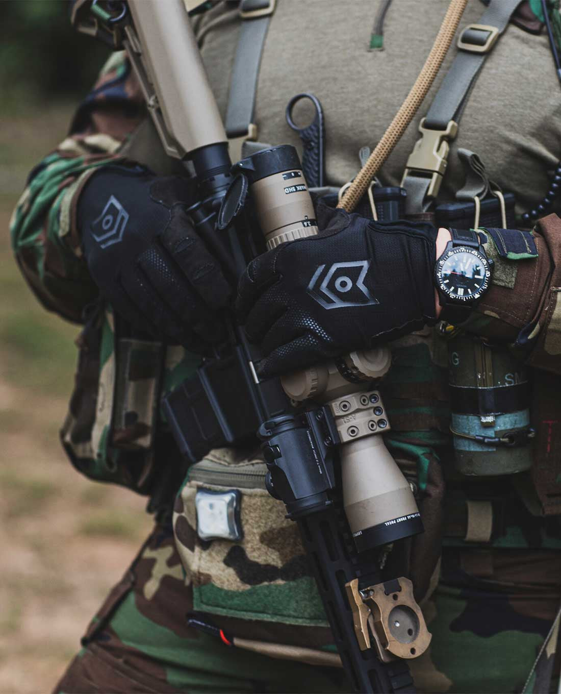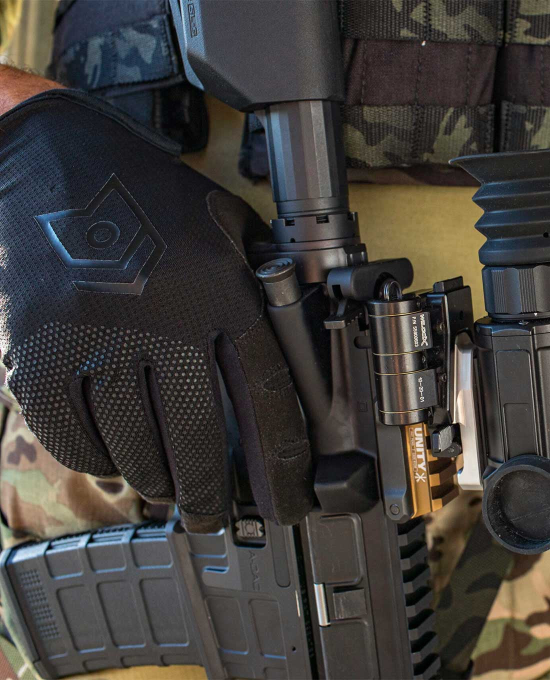 Die Slim-Fit-Fingerkonstruktion mit über den Fingerspitzen vernähten Nähten garantiert maximale Kontrolle am Abzug und ermöglicht ein präzises Handling von Funkgeräten, Ausrüstung und Schusswaffen.
