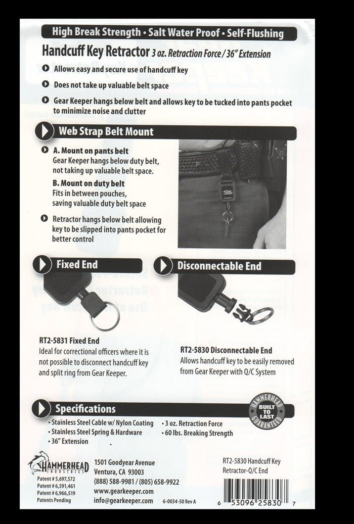 Der GearKeeper RT2-5830 ist ideal geeignet zur Schlüsselaufnahme. Selbstverständlich kann er aber auch andere Gegenstände bis ca. 85 Gramm wie z.B. Taschenlampe, Laser Pointer, Cutter, Schere, Handy, GPS u.a. Ausrüstung mit O-Ring Adaption aufnehmen.