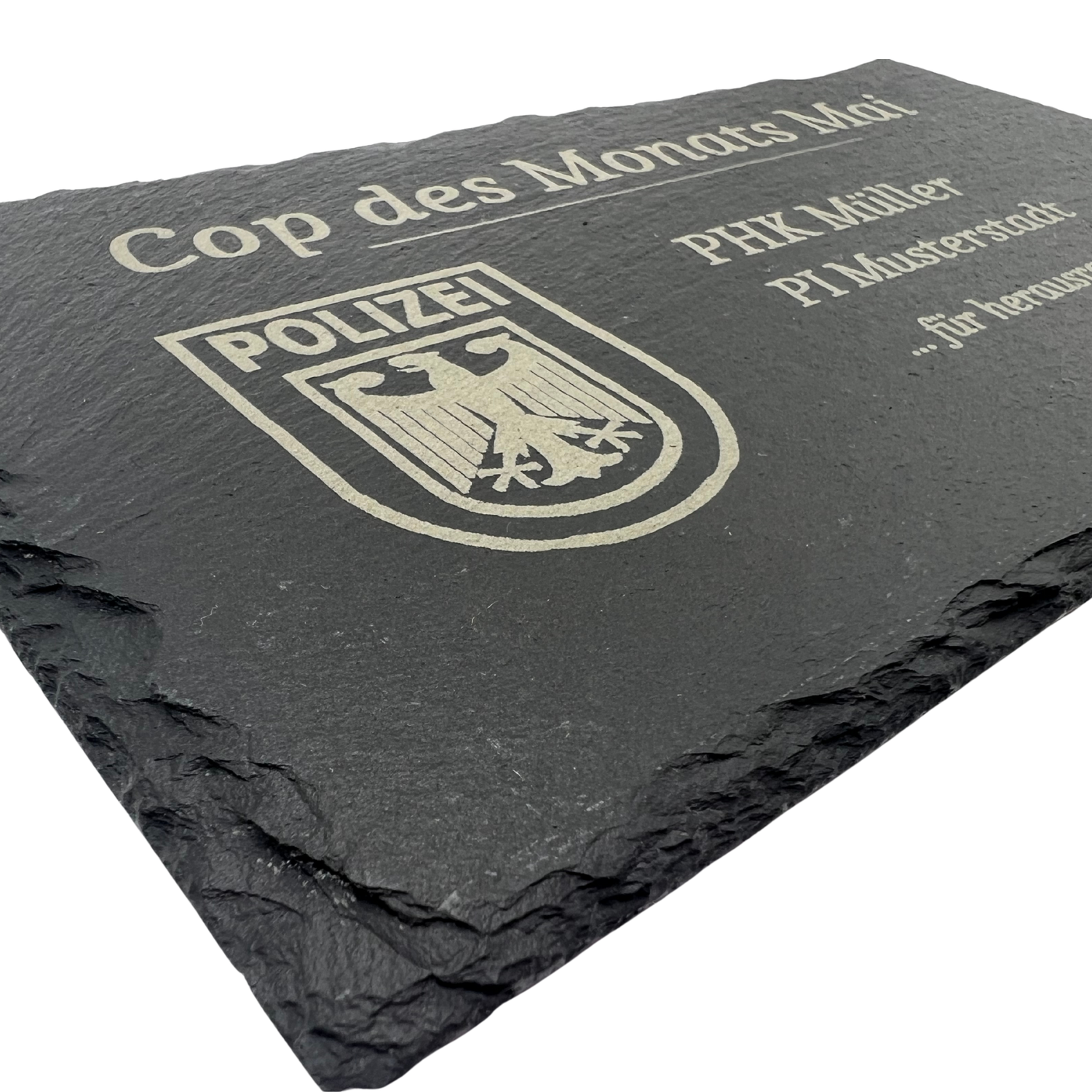 Ob als Andenken, Auszeichnung oder persönliche Geste – die Gravur kann frei gestaltet werden und bietet Raum für Namen, Daten, Widmungen, Zitate oder kleine Botschaften. Damit eignet sich die Schieferplatte ideal für zahlreiche Anlässe: als Geschenk zur Verabschiedung, Ernennung oder Beförderung, zum Geburtstag, Jubiläum, Ruhestand oder einfach als Ausdruck von Dank und Anerkennung.