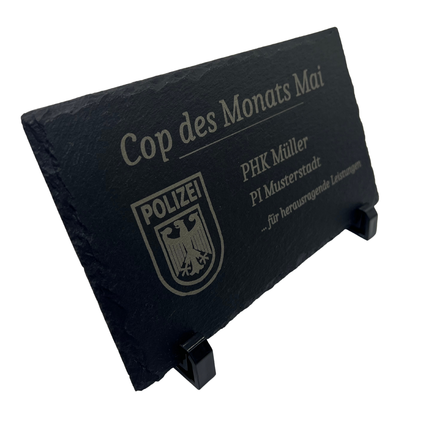 - Personalisierbar: Text, Name, Dienststelle, Datum, Rang u.v.m.