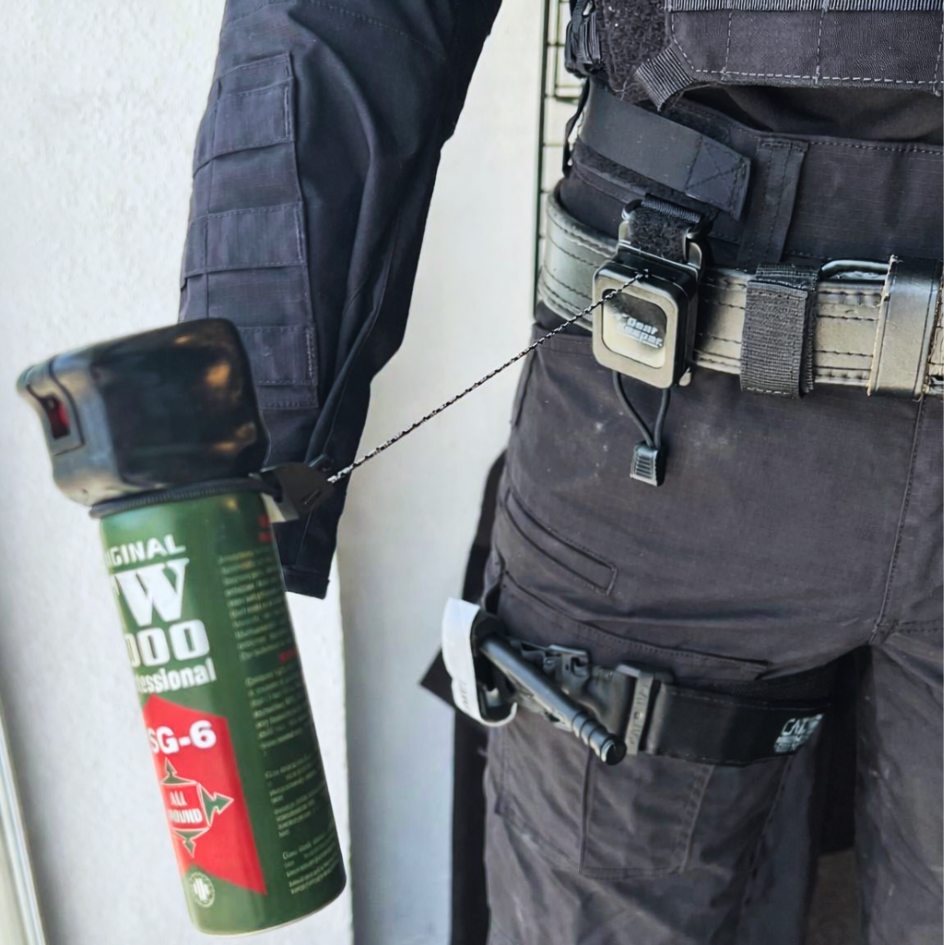 Der GearKeeper RT4-5701 ist ein robuster Ausrüstungshalter mit integriertem Rückzugssystem zur sicheren Fixierung von Pfeffersprays (RSG). Das Spray wird über elastische Schlaufen zuverlässig gehalten und beim Ziehen schnell freigegeben. Gleichzeitig sorgt der automatische Rückzug dafür, dass es nach der Nutzung wieder in die Ausgangsposition zurückkehrt und jederzeit griffbereit bleibt. Durch die flexible Befestigung eignet sich der GearKeeper ideal für den Einsatz an Gürtel, Weste oder MOLLE-Systemen.