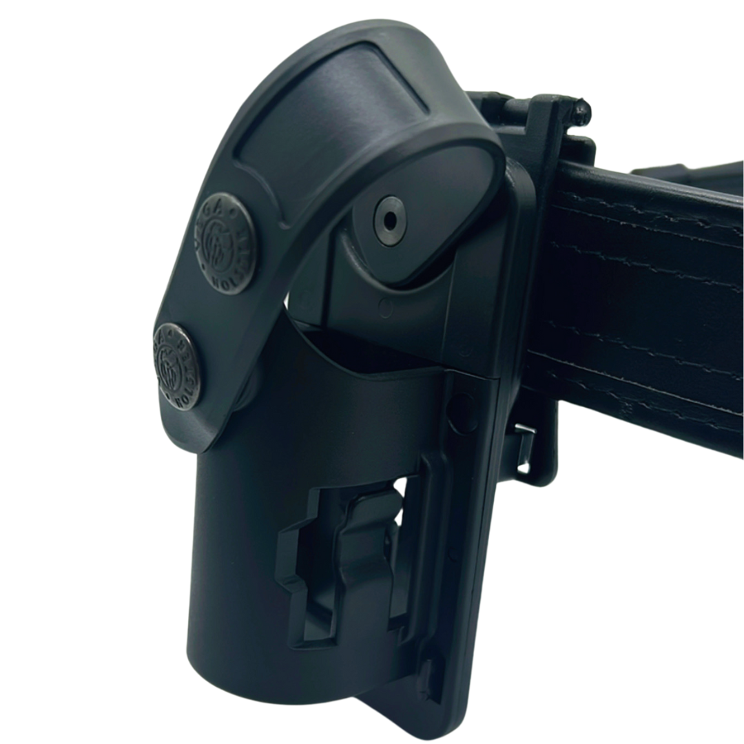 Das Holster ist außerdem um 360° drehbar, was dir eine individuelle Trageweise ermöglicht und schnellen Zugriff in jeder Situation garantiert.