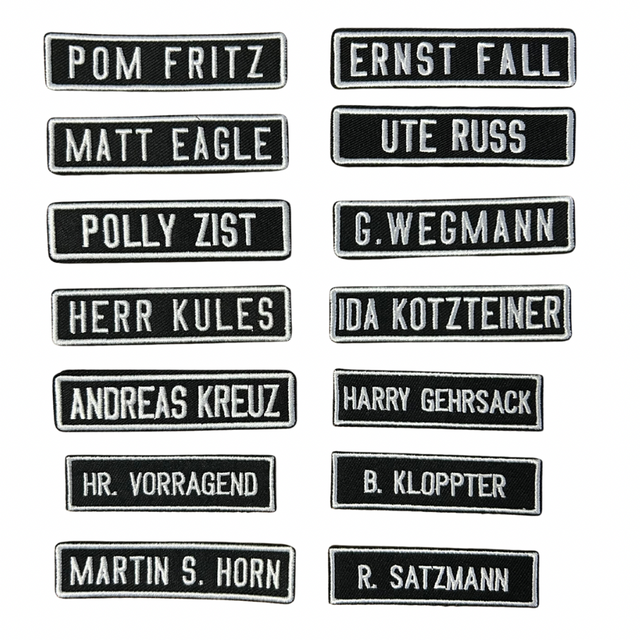 Die ultimativen Fun Patches mit den besten Fakenamen! Überrasche deine Kollegen mit einem lustigen Namensschild.