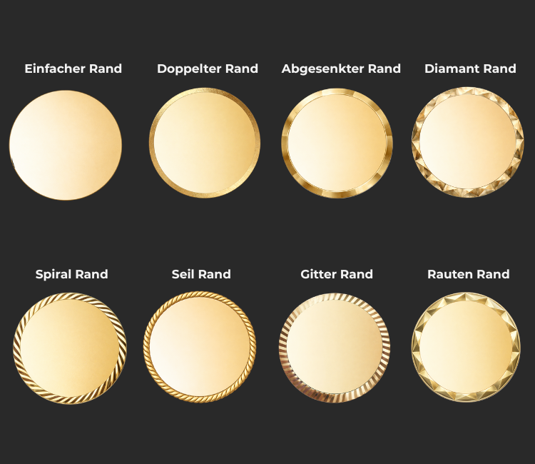 Auf Wunsch können die Coins auch am Rand graviert werden.